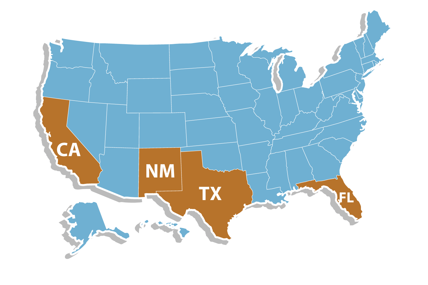 Texas, California , Florida y Nuevo México